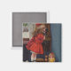 Cette belle carte postale victorienne montre une petite fille au téléphone, envoyant des salutations à ses proches. L'enfant parle au téléphone, tandis que sa poule et son ours attendent patiemment qu'elle termine son conversation.
