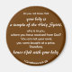 "Ne savez-vous pas que votre corps est un temple de l'Esprit Saint, qui est en vous, que vous avez reçu de Dieu? Vous n'êtes pas les vôtres ; vous avez été acheté à un prix. C'est pourquoi honorez Dieu avec votre corps." 1 Corinthiens 6:19-20
