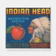 étiquette vintage de caisse de fruits pour les pommes de Washington avec un Indien américain illustré en tenue de tête en plumes.