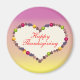 Un aimant Thanksgiving avec ma conception d'une forme cardiaque faite de fruits, légumes et cônes de pin. Le texte dit "Bon thanksgiving".