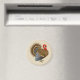 C'est un aimant rond pour décorer votre cuisine ou votre bureau pour Thanksgiving. On y trouve une dinde sur un arrière - plan beige.