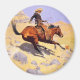 Ce dessin présente une peinture de l'American Old West par Frederic Remington (1861-1909). Membre de la deuxième génération d'artistes de l'Hudson River School, Remington est connu pour représenter l'Ouest des États-Unis dans le dernier quart du XIXe siècle, avec des images telles que des cowboys, des Indiens américains et la cavalerie des États-Unis.