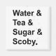 Un aimant avec les ingrédients de kombucha : eau, thé, sucre, scoby. Design original.