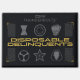 Bring a tactical, underground vibe to your apparel and accessories with the "Disposable Delinquents" team roster. This design features a clean yet gritty arrangement of the squad's signature symbols, from Bucky’s star to Ghost’s mask. The high-contrast black, silver, and gold palette makes it a striking piece for any fan’s collection, capturing the industrial and rebellious spirit of the Thunderbolts* film. A bold black and gold aesthetic perfect for Marvel fans looking for gritty, streetwear-style apparel and décor.