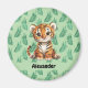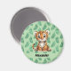 Aimant Tigre de dessin animé mignon sur feuilles tropical