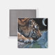 Scène d'imaginaire qui parle de nuits tropicales sous une lune de croissant et d'un tigre solitaire sur le rondelle. 25% du produit de la vente de cet article d'art aide le groupe Big Cat Secourt en Floride, aux Etats-Unis.