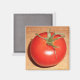 Photo d'une tomate rouge mûre sur une planche à découper en bois. Image copyright 2015 par Margaret E. Cmelik.