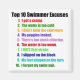 Voici les dix meilleures excuses de natation pour ne pas s'entraîner ou nager assez dur. Un cadeau idéal pour votre nageur ou votre entraîneur de natation. L'entraîneur de natation a entendu chacun d'eux !