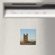 Aimant frigo souvenir avec la tour folle de Broadway sur une colline près de Broadway surplombant les Cotswolds en Angleterre, Royaume-Uni au coucher du soleil avec le texte : 'Broadway, Cotswolds'.