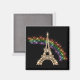 Tour Eiffel nacrée d'or avec arc-en-ciel sur noir.