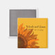 Customisez le joli tournesol orange sur Yellow Mariage Magnet avec les noms personnels de la mariée et du marié et leur date de cérémonie de mariage d'été ou d'automne pour créer un d'une faveur de fête, garder un cadeau ou enregistrer la date. Cet aimable aimant mariage botanique personnalisé présente une photo florale numériquement rehaussée d'une fleur de tournesol orange sur un arrière - plan jaune doré.