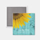 Faites votre propre tournesol rustique enregistrer la date magnet de style champêtre- Gardien personnalisé d'envoyer des invités mariages et des membres de la famille pour annoncer votre fiançailles- Rustique, turquoise planches de bois d'écorce turquoise ou blanchis, arrière - plan de bois de plage d'aqua avec jumbo, tournesol de pays jaune dans le coin supérieur. Lit 'Save the Date' dans élégant, script. Les noms de couple et de mariage date en bas dans la police de style moderne. Jolie tenue de mariage faveurs pour se souvenir de votre jour spécial. Correspond aux thèmes mariage fleuris de tournesol, mariage en bois rustique, couleurs mariages jaunes et turquoise ou turquoises, styles de mariages campagnards, mariages d'automne ou d'été, décoration mariage de plage, et mariages de grange rustique chic.