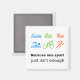 Un aimant drôle et inspirant pour un triathlète. Le texte est "Parce qu'un sport ne suffit pas". Il y a trois icônes de course de vélo de natation pour représenter un triathlon, en bleu, vert et orange.