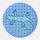 Gecko patterned with a tribal batik textile design - light chambray blue with shades of denim blue and white, outlined in indigo