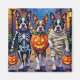 Les adorables Boston Terriers habillés de costumes d'Halloween ludiques portent des seaux citrouilles tout en faisant des tours ou en traitant sous le ciel illuminé par la lune. Ce design festif met en valeur le manteau tuxedo de la race, les grands yeux expressifs et la personnalité ludique, capturant parfaitement l'atmosphère éffrayante et amusante de la nuit d'Halloween. Une charmante fête pour les amoureux de les chiens comme pour les fans d'Halloween.