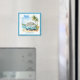 Cet aimant côtier personnalisé dispose d'un van rétro bus en bleu et blanc avec des palmiers tropicaux. Personnalisez avec votre choix de nom ou de texte spécial.