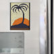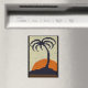 L'image imprimée sur aimant est une photo d'une tapisserie originale crochet mur suspendu conçu à la main et Copyright © par le designer publié Delores Chamblin. L'image de la silhouette artisanale unique du palmier et du soleil orange vif est reproduite sur l'aimant.