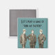 Cet aimant présente une image vintage de trois hommes bien habillés, sur un arrière - plan turquoise, avec le texte, "Jouons à un jeu de trouver mon tatouage."