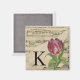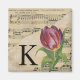 La tulipe violette et jaune de style botanique s'associe à la musique vintage en feuille dans un style victorien classique. Cette conception inspirée de la découpage est personnalisée avec le monogramme "K" sur un arrière - plan de parchemin âgé.