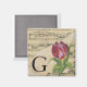 La tulipe violette et jaune de style botanique s'associe à la musique vintage en feuille dans un style victorien classique. Cette conception inspirée de la découpage est personnalisée avec le monogramme "G" sur un arrière - plan de parchemin âgé.