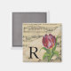La tulipe violette et jaune de style botanique s'associe à la musique vintage en feuille dans un style victorien classique. Cette conception inspirée de la découpage est personnalisée avec le monogramme "R" sur un arrière - plan de parchemin âgé.