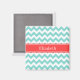Aimant Turq / Aqua Wht Chevron Coral Nom rouge Monogramme