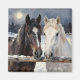 Aimant Two Horses on a Snowy Farm Under the Moon