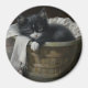 Ajoutez un peu de charme à votre réfrigérateur ou à toute autre surface magnétique lorsque vous utilisez cet aimant de chaton sucré! Ce tableau se concentre sur un adorable chaton noir et blanc niché au sommet d'une couverture blanche dans une corbeille cachée dans un coin cosy. Les yeux du chaton sont brillants et curieux, et il semble tendre vers la frange sur le bord de la couverture. Les petites cordes blanches de la frange sont si tentantes ! L'environnement est faiblement éclairé, créant un sentiment de chaleur et d'intimité. Le tableau dégage un sentiment de confort et de tranquillité, comme si le spectateur était tombé sur un moment de sérénité dans la vie de ce petit félin ludique. Les détails de la peinture sont réunis pour créer une scène charmante et attachante qui ravira tout amoureux des chats.