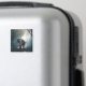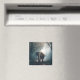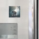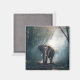 Un aimant avec la photo d'un éléphant asiatique aux oreilles arrondies se tenant dans une clairière de forêt, regardant vers le spectateur avec la lumière du soleil qui descend à travers la canopée des arbres.