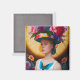 Image d'une dame avec un casquette solaire fleuri. C'est une image créée par AI avec un design à thème floral.