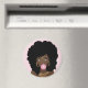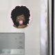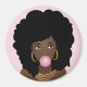 Ce design présente une belle femme aux cheveux naturels avec afro noir, bijoux en or, et chewing-gum rose sur un arrière - plan beige. Parfait pour ceux qui aiment être uniques.