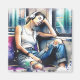 L'art de Ai dépeint une femme dans le métro dans un débardeur, déchiré des jeans juste en écoutant de la musique sur son casque.