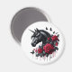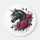 Aimant Unicorne noire entourée de Roses rouges vibrantes