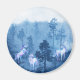 Mystique, conception imaginaire de licornes dans une forêt de pins brumeux. Aquarelles peintes à la main.