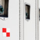 Symbole du drapeau nautique uniforme rouge, blanc, à damiers, carré