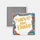 Vous cherchez un mariage rétro-moderne et tendance unique, sauf la date? Regardez notre magnet ondulé rétro d'inspiration unique Boho Super rétro jaune coloré Wavy ! Cette sauvegarde ondulée présente de belles aquarelles aux lignes ondulées peintes à la main avec un design abstrait coloré et boho donnant un look unique et tendance, idéal pour un thème rétro mariage.