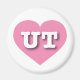 Cet aimant est composé d'un coeur rose cool et calme contenant les lettres coques supérieures et audacieuses UT, l'abréviation officielle de Utah, l'état de ruche.
