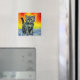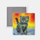 Magnet avec un chat de style Van Gogh. Ce chaton noir se détend sur les eaux bleues d'une plage. Un coucher de soleil de rouge et de jaune remplit le ciel. Un cadeau merveilleux pour les amoureux de les chats et les collectionneurs d'art hollandais !