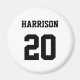 Varsity sports noir blanc nom personnalisé numéro aimant monogramme. Le style sportif varié. Customisez-le avec votre nom, âge, année, numéro ou nom d'équipe sportive.