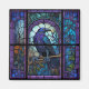 Décoré de vitraux, un corbeau déplaisant éffrayant tourne son regard vers le spectateur.