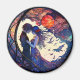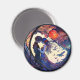 Un aimant avec un design de verre coloré représentant un couple et la lune.