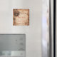 Jolie Enregistrer l'aimant Date fait en tans et brun. Ce merveilleux aimant a un arrière - plan marron antique. Le côté gauche a un graphique d'une serrure en forme de coeur et une clé. La date du mariage et les noms des mariés et des mariés sont en marron assorti sur le côté droit. Un grand rappel pour toute votre famille et vos amis.