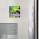 Portrait fractal coloré, surréaliste en vert vif, jaune orange, noir blanc turquoise bleu.