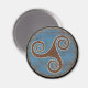 Un aimant avec le design classique Celtic Triskele sur un arrière - plan en bois Viking en bois magnifiquement patiné.
