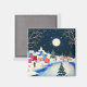 L'hiver est arrivé et a couvert un village de neige. Les enfants aiment, les gens profitent de leur nuit d'hiver contre une pleine lune brillante.