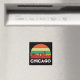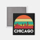 Un aimant Cityscape Vintage de Chicago unique et branché qui montre l'horizon de la ville américaine avec toutes les tours et les monuments célèbres dans l'Illinois et un coucher de soleil vintage. Idée cadeau et souvenir.