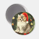 Magnet avec un chaton de Noël vintage ! Ce chaton adorable porte un chapeau de Père Noël et s'assoit dans un sapin de Noël décoré d'ornements. Un cadeau merveilleux pour la saison de Noël et les amoureux de les chats!