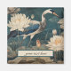 Tableau vintage d'une scène botanique avec une grue bleue entourée de fleurs de lotus blancs
