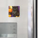 Un aimant avec un chaton d'Halloween vintage ! Un chaton noir moelleux pose à côté des citrouilles contre un arrière - plan violet. Un cadeau amusant pour les fêtes d'Halloween et les amoureux de les chats!