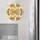 Un aimant de papier peint vintage, design et coloré, avec un motif à fleurs tropicales turquoise et orangée à l'ancienne contre un arrière - plan doré et beige.